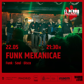 Funk Mekanicae, el mejor funky/sould/disco de Madrid durante casi ya dos décadas. Ocho músicos en escena, con el repertorio más sugerente y potente que se encuentra en la escena actual, aseguran un vivo emocionante y bailado a través de un sonido de calidad. Es una banda diferente por su calidad y repertorio, conservando la esencia de los estilos que más nos siguen emocionando, con una interpretación contundente y cautivadora.