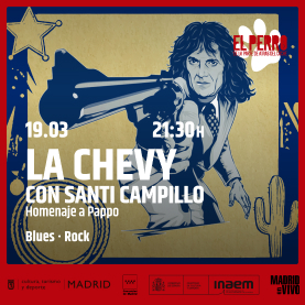 «La Chevy es un Power Trío de Blues y Rock, que viene desde hace ya 20 años rodando por las salas de Madrid, homenajeando al gran guitarrista Argentino, Norberto Anibal “Pappo” Napolitano. La Chevy no es un tributo a Pappo, es una power trio que hace Rock and Roll y Blues a potencia trifásica de la mano de Mariano López en la batería, Isrock Silver en Guitarra, John Chevyk en el bajo y voz. Este 19 de Marzo sigue la celebración de los 20 años y realiza una gira por España junto al gran guitarrista español SANTI CAMPILLO».