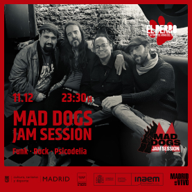 Inspirada en la icónica Madness Jam Session —que desde 2017 recorrió las mejores salas del circuito de música negra de la ciudad— MAD-DOGS incorpora ahora tintes aún más rockeros, fusionando la fuerza y energía del género con las raíces negras que siempre han caracterizado la jam. El resultado es un sonido único, que conecta con la identidad de la sala y promete noches llenas de improvisación, energía y pura música en vivo.